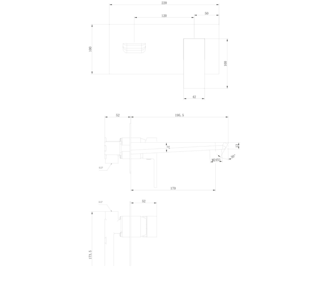 Muro Brushed Brass Wall Mounted Bath Mixer